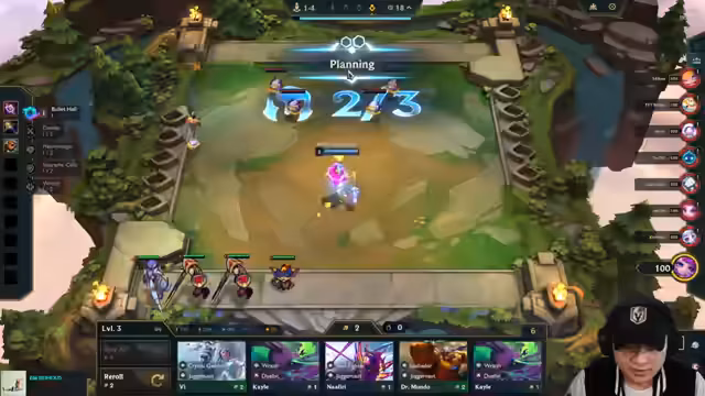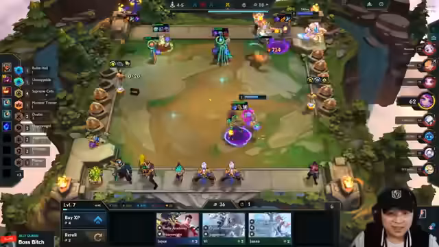 02:18:00Der Stream beginnt mit einem unorganisierten Spielstart. Es herrscht Verwirrung über die Platzierung von Einheiten wie Volibear und Diego. Der Spieler rollt unter Zeitdruck auf 2-7 und versucht, ein funktionierendes Board mit Einheiten wie Kogma und Yasuo aufzubauen, beschreibt aber gleichzeitig seine Items als 'shit' und 'shit'. Das Chaos setzt sich fort, als er versucht, Items wie Hand of Justice und Edge of Night zu finden, während er ständig seine Strategie anpasst und umrollt.
