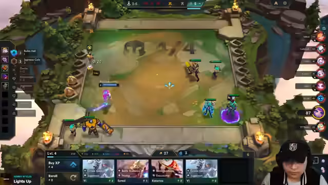 02:24:52Etwa bei 50.000 Gold stabilisiert sich das Spiel. Die Strategie konzentriert sich nun auf die Champions Katarina und Rell, wobei der Spieler Items für eine AD-basierte oder eine AP-basierte Combo sucht. Es kommt zu einer Konfrontation mit einem Malphite-Spieler, was den Fokus auf Item-Suche wie Glove und Guardbreaker verschiebt. Die Strategie wird aggressiver verfolgt, indem der Spieler versucht, durch gezieltes Rollen und das Setzen von Einheiten wie Rakan die Position im Spiel zu verbessern und einen Vorteil zu erzielen.