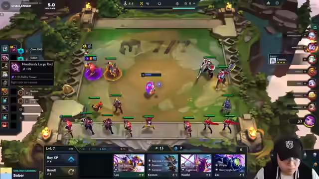 02:24:52Es werden verschiedene Unit-Kombinationen und Strategien evaluiert, wobei der Fokus auf der Optimierung des Teams liegt. Es wird überlegt, wann der richtige Zeitpunkt zum Rollen ist, entweder in Stage 3-3 oder später. Jenna soll nicht Rod gegeben werden, da sie möglicherweise noch gespielt wird. Hand of Justice und Edge of Night werden als wichtige Items identifiziert, während Rotclaw als ungeeignet angesehen wird. Es wird überlegt, Cade 3 zu chasen und eine 5 Battle, Rise plus Protector-Kombination anzustreben. Die aktuelle Item-Zusammenstellung wird als nicht optimal bewertet, und es wird nach Alternativen gesucht, wie Rabadons oder Nashers. Es wird festgestellt, dass der Gegner zu stark ist, um viele Rollen durchzuführen. Rakan und Jace werden als mögliche Optionen diskutiert, wobei Rakan Jace Swaps in Betracht gezogen werden, um die Positionierung zu verbessern. Es wird entschieden, Rakan und Garen zu swappen, um die Heilung zu maximieren. Es wird überlegt, Selfish zu droppen und nach unaufhaltsamen Einheiten zu suchen. Rotis Morello und ein Tank-Item werden als nächste Ziele identifiziert. Jace wird als nicht tanky genug eingestuft, und es wird ein weiterer Rakan Jace Swap durchgeführt. Es wird festgestellt, dass der Gegner verliert und eine weitere Komponente angestrebt wird.