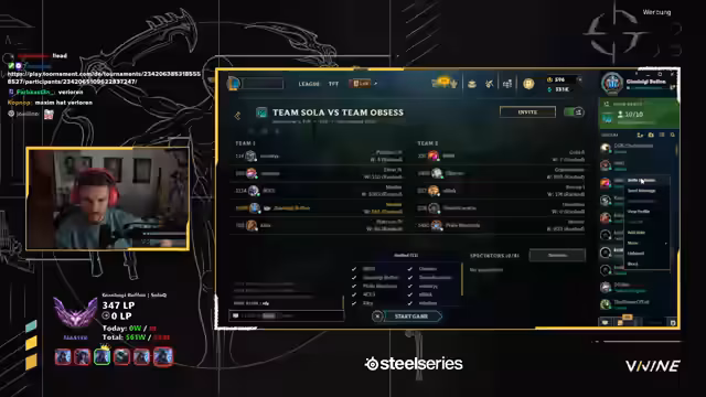 06:12:02Die Spieler diskutieren die Draft-Strategie, insbesondere die Frage, ob ein Counterpick oder Firstpick sinnvoll ist. Es wird erwartet, dass der Gegner Mordekaiser bannen wird. Ein Spieler möchte definitiv etwas anderes als Mordekaiser spielen, da dessen Funktionalität bereits bekannt ist. Die Kommunikation bezüglich der Einladung in die Lobby gestaltet sich schwierig, da ein Spieler keine Freundschaftsanfragen empfangen kann. Es wird beschlossen, dass ein anderer Spieler als Beobachter fungiert, um den Prozess zu beschleunigen. Die Überlegung, Aphelios auszuprobieren, wird geäußert, wobei die Unsicherheit über seine Leistung ohne Items besteht. Die Idee, Nautilus als Support zu picken, wird als gut befunden, da er stark gegen Lux ist, einen Champion, den der gegnerische Support oft spielt. Die Diskussion dreht sich auch um die Midlane-Wahl, wobei Silas als potenzieller Pick genannt wird, besonders in Kombination mit Engage-Champions wie Braum oder Taric. Das Team einigt sich auf eine Kombination aus Sejuani, Silas, Aphelios und Senna, mit einem Toplane-Counterpick, um eine starke und experimentelle Draft zu haben. Die Motivation wird durch die Aussicht auf zusätzliche 100 Euro bei Turniersieg und ein gemeinsames Abendessen sowie eine Shotrunde bei der Gamescom weiter gesteigert.