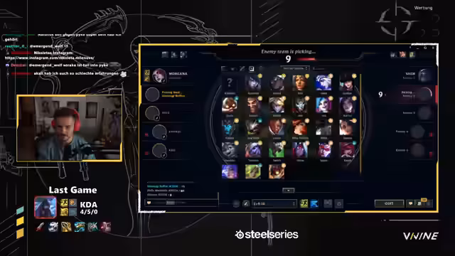 07:31:09In der Draft-Phase wird festgestellt, dass Garen gepickt wurde. Die Spieler überlegen, ob Darius oder Vayne die bessere Wahl gegen Garen wäre, wobei die Entscheidung auf Darius fällt, um den Garen-Spieler zu 'traumatisieren'. Rakan wird gebannt, um dem Gegner ein wichtiges Engage-Tool zu nehmen, da sie sonst keinen Follow-up auf Nafiri hätten. Die Wahl des Supports fällt auf Braum, der als solider Pick gegen Kog'Maw und Mel angesehen wird. Die Spieler entscheiden sich für teure Skins, um eine 'Aura' auszustrahlen und den Gegner einzuschüchtern. Das Spiel beginnt, und es kommt zu frühen Auseinandersetzungen auf der Top-Lane, wobei Darius gegen Garen spielt. Trotz eines Missklicks und eines frühen Rückstands auf der Top-Lane bleibt das Team optimistisch und versucht, durch geschicktes Spielen und die Nutzung von Jungle-Vorteilen wieder ins Spiel zu kommen. Die Mid-Lane wird als besonders schwierig empfunden, da der gegnerische Kog'Maw viel Schaden verursacht und schwer zu erreichen ist.