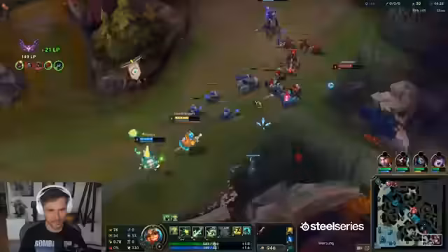 04:17:46Der Streamer zeigt erhebliche Frustration über den Spielverlauf, insbesondere die spielerische Leistung des Teams. Er äußert seine Verärgerung über die Champions wie Diana, Poppy und Timo, die als übermächtig empfunden werden. Es kommt zu kritischen Kommentaren über das Gameplay, das als geisteskrank und verzweifelt beschrieben wird, mit wiederholten Klagen über das Verlieren von Spielen und die Ohnmacht in Teamkämpfen.