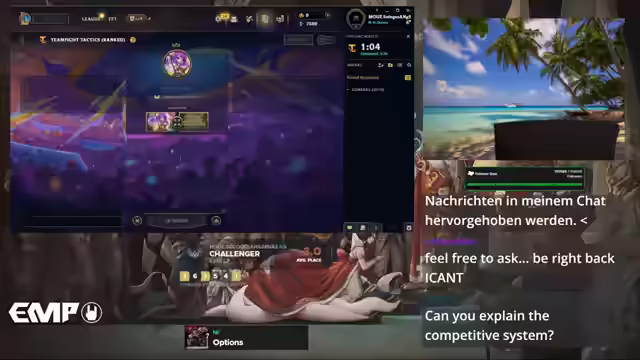 00:50:33Es wird über die aktuelle Meta gesprochen und festgestellt, dass Jinx immer noch die beste Kombo ist. Jenna, Mighty Mac und Kayle werden als sehr gut angesehen. Kogma braucht Artefakt-Items oder ähnliches, um im ersten Platz zu landen, ist aber ohne diese gut für Top 4. Karma ist risky, und Rise kostet viel Gold. Melfeldchen kann man öfter spielen. Tier 5 Einheiten wie Ballista und Gangplinger werden generft. Es gibt eine neue Gender-Variante mit Zack Hero, die Protagonist benötigt. Double Trouble Gin Mundo wurde gesehen. Volibear 6-Bestion-Kombo ist nicht gut, es gibt bessere Volibear-Coms mit Edge-Slots. Level 9 Rush mit Luchador spielt man nicht mehr. Viego kann mit Artefakten gut performen. Kaiser muss auch Artefakte haben. Artefaktabhängige Comps sind broken. Die Malser-Stargang-Comps ist Trash. Ash wurde tot generft. Malser-Ramos wurde genervt. Heavyweight ist noch okay. Edge.Volibare ist gar nicht so schlecht. Luchs trifft aber die Ulti nicht. Es wird über die Nutzung dieser Builds in Online-Turnieren diskutiert. Der Streamer wird von Tealates gegrüßt. Es wird überlegt, welche Comps man mit Double Trouble spielen kann. Es wird schnell ein Gameplan erstellt, bevor ein neues Spiel gestartet wird. Als bevorzugte Comps werden Jinx, Kale, Jenna, Jhin, Saya, Akali und Katelyn genannt. Bei Giga Windstick AP Spot würde man Karma, Rise oder Akali spielen, bei Giga Windstick AD Spot Samira. Bei Re-Roll-Spot würde man Jenna, Kale mit Economy Augmenten, Kogma oder Lucian spielen. Es sollen ein paar Games vom Vortag VOD-Reviewt werden.