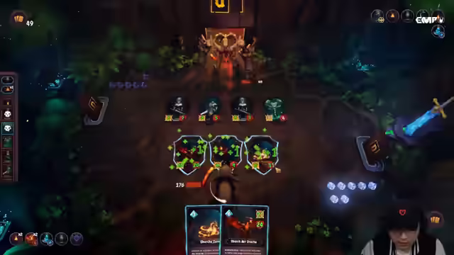 07:48:33Es wird gegen einen Gegner gespielt, dessen Einheiten durch Einfrieren zusätzliche HP erhalten und der eine Chance hat, bei jedem Zauber eine Karte zu ziehen. Es wird überlegt, ob man bereits früh stark spielen muss, um HP zu sparen, auch wenn das bedeutet, Machtkarten zu opfern, die in der nächsten Runde nicht mehr verfügbar sind. Der Gegner friert die eigenen Einheiten ständig ein, was die Situation erschwert. Es wird erklärt, dass es wichtig ist, keinen AP-Schaden zu nehmen, da man später im Spiel viel AP verliert. Es wird zwischen Licht- und Totemdecks abgewogen, aber letztendlich das Feuerdeck priorisiert. Es wird versucht, den Drachen zu finden, um mehrere Drachenkarten im Deck zu haben. Rote Machtkarten werden bevorzugt und schlechte Karten aus dem Deck entfernt. Es wird erklärt, wie der Gegner sich durch Zauber heilt und Mana zurückgewinnt, wenn er Portalkarten spielt. Die eigenen Passiven geben jede Runde 1 HP und 1 Schaden, was gut mit den Karten harmoniert. Es wird betont, dass man sein Deck nicht zu voll machen sollte, da viele Einheiten andere Einheiten beschwören und man Platz auf dem Feld benötigt. Es wird demonstriert, wie man den Drachen beschwört, um Schaden zu verursachen, und wie das Drachendeck als das coolste Deck empfunden wird.