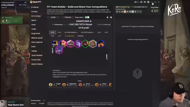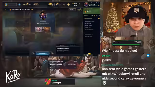00:04:16In den frühen Minuten des Streams analysiert sologesang die aktuelle Meta-Lage von Teamfight Tactics. Er diskutiert verschiedene starke Kompositionen wie Bilgewater Rise, die besonders mit Allowies und Tank-Items funktioniert. Dabei erwähnt er, dass Full Economy Augmente entscheidend sind, um den Bonus zu erreichen. Zusätzlich spricht er über Schwierigkeiten bei Hard-Force-Comps, da diese oft zu Bottom-4-Ergebnissen führen, und empfiehlt flexiblere Ansätze. Die Ratschläge sind praxisorientiert und zielen darauf ab, Spielern zu helfen, ihre Elo zu verbessern durch Anpassung an die jeweilige Meta.