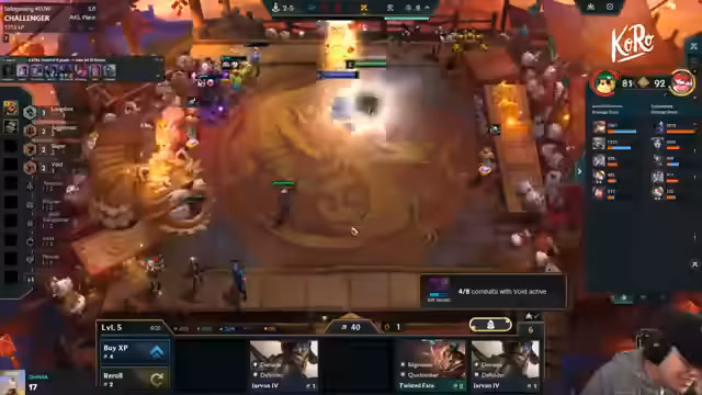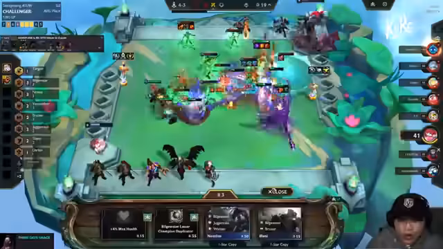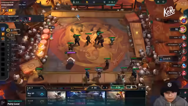 05:00:34Der Streamer sucht weiterhin nach mächtigen Champions wie 'Swain', 'Shyvana' und 'Volibear', um seine 'Bruiser' oder 'Juggernaut'-Kombination zu verstärken. Er erwirbt ein 'Bilgewater Emblem' und überlegt, wie es am besten genutzt werden kann, etwa durch die Integration von 'Senna' oder 'Nautilus'. Items werden neu gewogen – 'Hand of Justice' wird für 'Gangplank' in Betracht gezogen, während 'Sunfire' für Tank-Zwecke priorisiert wird. Die Herausforderung bleibt, die richtigen Einheiten rechtzeitig auf Level 2 oder 3 zu bringen, während man gegen andere Spieler mit ähnlichen Zielsetzungen konkurriert.