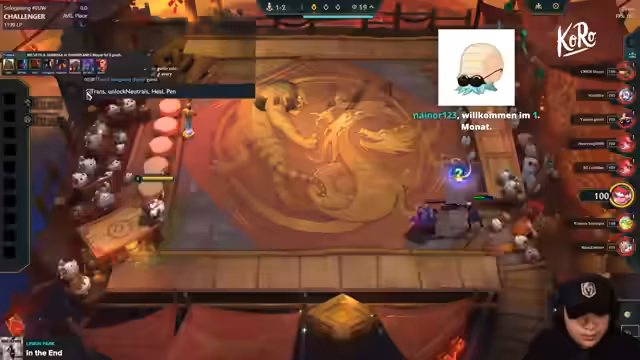 04:02:31Der Streamer interagiert stark mit dem Chat. Er gibt Anweisungen für Meta-TFT, insbesondere wie man die Overlay-Ebene auf bestimmte Levels wie 9 oder 10 ändert. Er erklärt, dass man die Pinguin-App öffnen und den Comp auswählen muss, damit das Level im Spiel angezeigt wird. Diese Technik ist für sein Gameplay wichtig, damit er nicht vom Spiel abgelenkt wird. Er erklärt auch kurz seine Item-Strategie.