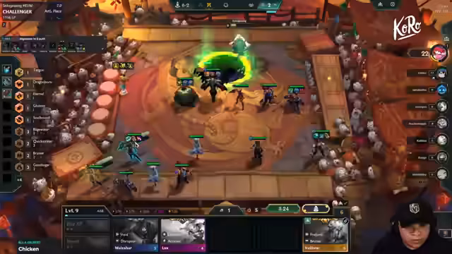 00:20:56Im Mid-Game steht das effektive Management der gesammelten Items im Fokus. Der Streamer zeigt, wie er Items wie Rageblade, Titans und Quicksilber flexibel auf verschiedene Einheiten wie Slayers, Warwick oder Jinx verteilt, um die stärkste Komposition zu bilden. Entscheidungen treffen, ob man auf Level 8 pushen oder mit Wirtschaft Items aufbauen, wird als entscheidend für den Verlauf des Spieles betrachtet. Die Suche nach wichtigen Items und der Bau von Tank-Items, um das Team zu stabilisieren, ist eine zentrale Herausforderung in dieser Phase.