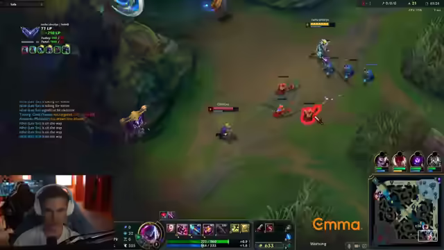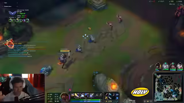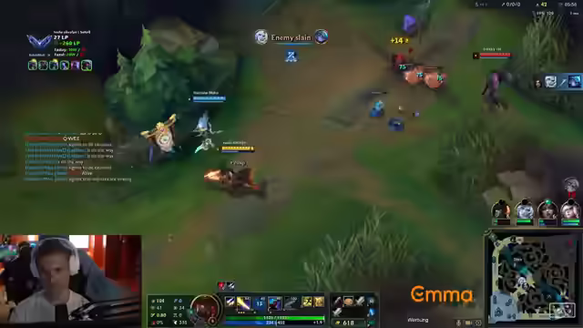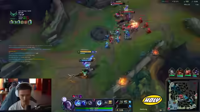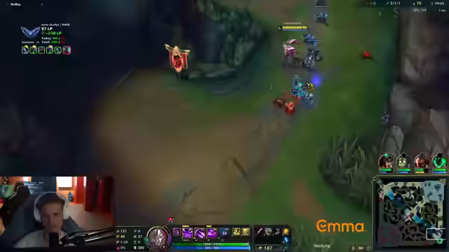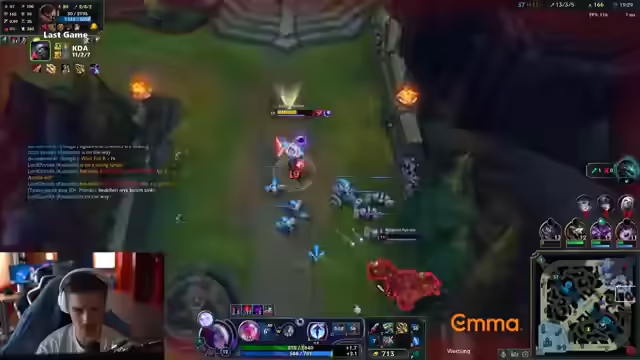 08:07:29Es wird festgestellt, dass ein Thresh-Spieler im Trial ist und Freddy mit vier Mann am P2 getimed wird. Es wird die dritte Serverreise mit Freddy erwähnt und die Tatsache, dass dies möglicherweise das erste gewonnene Spiel gegen ihn ist. Die Spieler vermuten, dass sie noch Chancen haben, das Spiel zu drehen, obwohl der Gegner bereits in Half-Life ist. Ein Yasuo-Spieler wird als robotisch und möglicherweise als Scripter bezeichnet, aber es wird auch in Betracht gezogen, dass er einfach sehr gut ist. Es wird überlegt, ob Freddy vom Frechgeflame spielt und dass es bald weniger Gegner im High-Elo-Bereich geben wird. Technische Probleme mit dem TS werden angesprochen. Ein missglückter Spielzug wird als 'terrible' bezeichnet, aber die witzigen Geräusche dabei werden gelobt. Karni wird für einen riskanten Spielzug gelobt, der Content generiert.