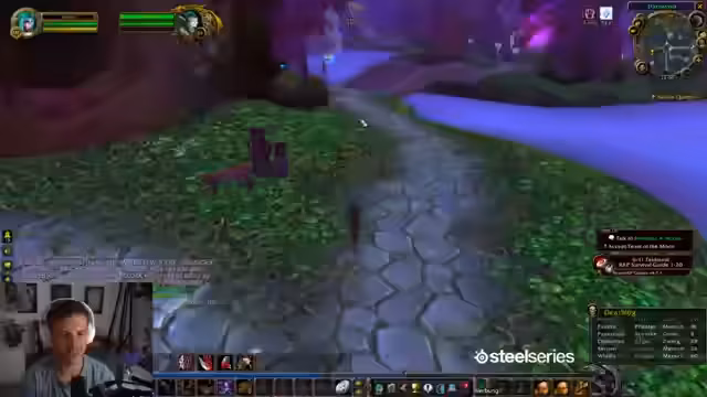 00:00:15Der Stream beginnt mit einer persönlichen Bemerkung, dass der Streamer viel unterwegs war und sich nun entspannt ins Spiel vertieft. Der Charakter befindet sich bereits auf Level 10, nachdem am Freitag der Start des neuen WoW-Events "One Life" absolviert wurde. Ein zentrales Thema ist die Einsamkeit, da der Streamer nicht mehr von einem Begleiter wie Judy geschützt ist und sich allein in der Welt bewegen muss. Die Quest "Dringende Geschäfte" wird angenommen und die Jagd nach Moostumoren beginnt, was sich bereits als gefährlicher erweist als erwartet.