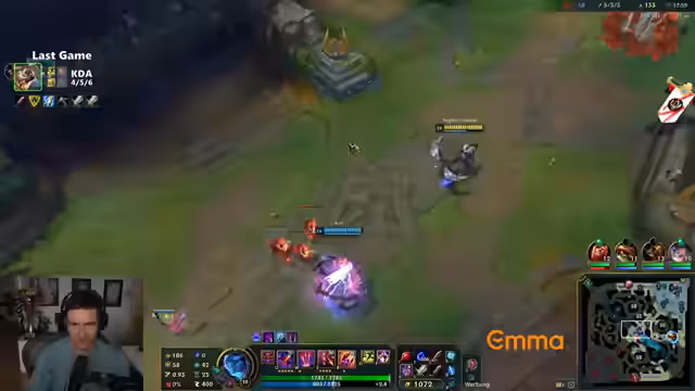 00:02:04Das Spiel beginnt mit Varus gegen Caitlyn und Yuumi auf der Bot-Lane. Der Streamer äußert Enttäuschung über den Verlust des Raid-Kader-Platzes. Level 1 wird als kritisch angesehen, und eine Missachtung von Warding führt zu einem verlorenen Trade und einem spürbaren Rückstand in der Lane, der sich das ganze Spiel hinzieht.