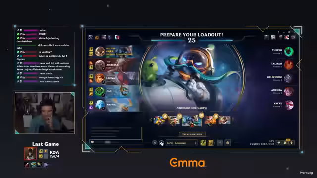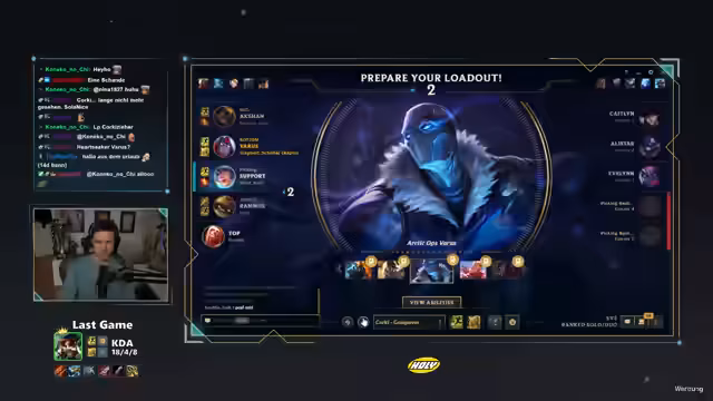 00:00:25Nach einer Pause begrüßt der Streamer sein Publikum und kündigt einen ehrlichen Versuch an, die 600 LP-Marke im Master-Rang zu erreichen. Er hat 531 LP und möchte die aktuelle Performanz verbessern, wobei er den hohen Spielevel in der Solo-Queue als stressig empfindet, aber dennoch Lust auf das Spiel hat. Der Tag wird durch die anstehende LEC abgerundet.