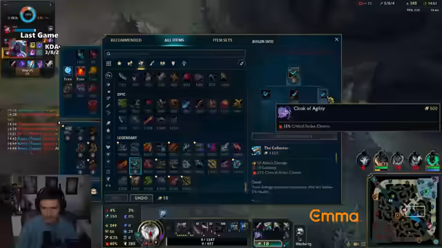 01:56:21Nach einer Reihe verlorener Spiele beginnt der Streamer, seine Strategie und die Teamzusammensetzung zu analysieren. Er stellt fest, dass es ihm unmöglich ist, Corki gegen die feindliche Vayne zu halten, ohne das Item Collector. Er diskutiert über die Notwendigkeit, Items wie Lord Dominik oder Mortal Reminder zu wählen, und kommt zu dem Schluss, dass die Situation aussichtslos erscheint. Er erwähnt, dass die Gegner sehr stark sind und die Botlane bereits am Anfang stark zurückliegt. Das Gefühl der Hoffnungslosigkeit setzt ein, als er feststellt, dass selbst ein Sieg in der Mid-Lane die anhaltende Niederlage in der Bot-Lane nicht kompensieren kann.
