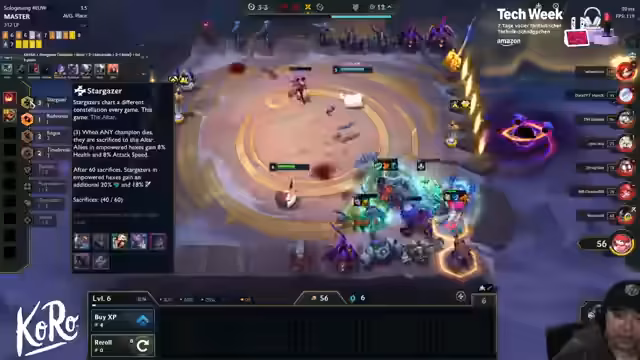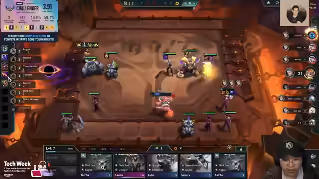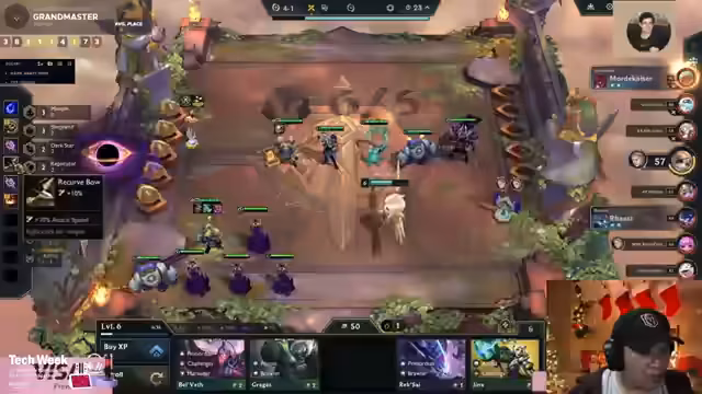 00:58:20Im späten Spiel konzentriert sich der Streamer darauf, Topplatzierungen zu erreichen. Er erklärt, wie man mit Comp-Kombinationen wie 'Belveth 3' oder 'Briar 3' am besten umgeht und wann es sinnvoll ist, auf Level 8 oder 9 zu pushen. Er gibt auch Ratschläge, wie man mit contested Champions wie Maokai oder Victor umgehen kann.