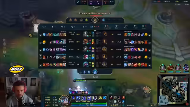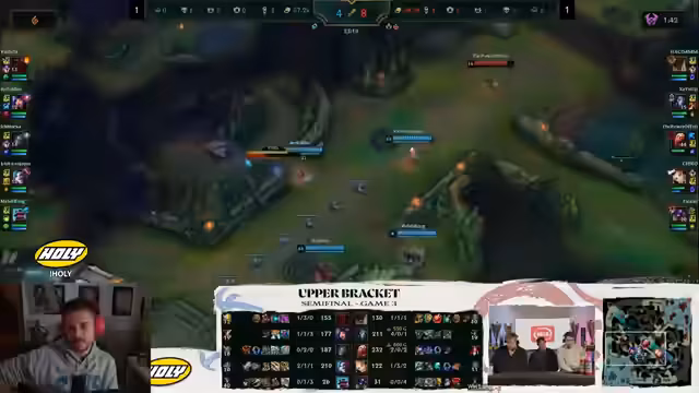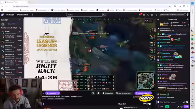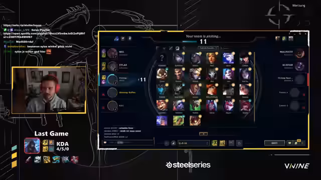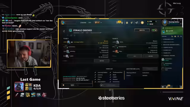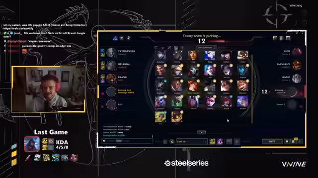 00:00:30Der Stream beginnt mit technischen Schwierigkeiten, da der Streamer aus der Lobby gekickt wird und sein Client neu gestartet werden muss. Währenddessen werden die anderen Spieler bereits eingeladen. Es wird über wiederkehrende Error-Nachrichten bei Twitch gesprochen, die das Video ausblenden. Die Spieler versichern, topfit und bereit für das Halbfinale zu sein, das gleichzeitig mit einem anderen Spiel stattfindet. Es wird eine Einladung erwartet, die jedoch noch aussteht. Die Diskussion dreht sich auch um die Ränge der Gegner und die Anpassung der Bann-Strategie, insbesondere im Hinblick auf potenzielle Champion-Picks wie Malzahar oder Smolder. Die Entscheidung fällt, bei den ursprünglichen Banns zu bleiben, um die Gegner zu überraschen.