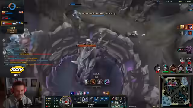 07:00:24Die Spieler befinden sich in einer kritischen Phase des Spiels, in der jede Entscheidung zählt. Es wird diskutiert, ob ein Inhibitor genommen werden soll, wobei die Risiken und potenziellen Vorteile abgewogen werden. Die Strategie konzentriert sich darauf, den Nashor zu sichern, sobald er erscheint, da ein entscheidender Champion des Gegners, Kayle, noch kein drittes Item hat und Ulti auf Cooldown ist. Es wird betont, dass kein 50-50-Risiko eingegangen werden soll, sondern der Gegner gezwungen werden muss, auf den Nashor zu reagieren, während ein anderer Champion, Trundle, die Botlane pusht. Die Vision-Kontrolle um den Nashor ist entscheidend, und das Team versucht, sich zu sammeln und eine gemeinsame Strategie zu finden, um den Drake oder Nashor zu sichern, während Kayle isoliert wird.