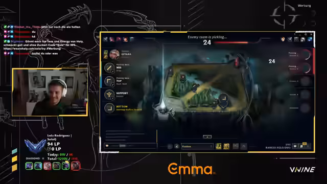 00:06:11Abends wechselt der Streamer zu League of Legends. Er kommentiert ein schwieriges Match mit dem Champion Smolder, das trotz seiner guten Leistung verlorenging. Das Team sei in mehreren Lanes hinterher gewesen, und besonders die Windwall des gegnerischen Yasuos habe die entscheidenden Fights bestimmt. Er kritisiert seine eigene Itemwahl und die Teamkommunikation.