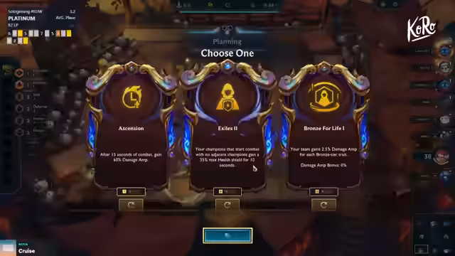 13:53:28Die strategische Ausrichtung verlagert sich stark auf das Sammeln von Economy-Augmenten wie Triple Econ. Der Spieler erkennt, dass Econ-Augmente der Schlüssel zum Erfolg im Spätspiel sind. Es wird intensiv nach einem guten Build gesucht, der mit den Econ-Vorteilen umgehen kann. Die Diskussion beinhaltet das Rollen auf Level 8 und 9, um ein starker Board aufzubauen. Die Entscheidungen sind nun langfristiger ausgerichtet, mit dem Ziel, eine starke Position für das Endgame zu erreichen und die Platzierung zu sichern.