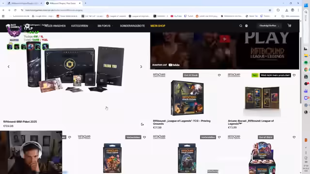 03:31:15Der Streamer beschäftigt sich intensiv mit der Beschaffung von Riftbound-Karten, da die lokalen Läden ausverkauft sind. Auf Online-Marktplätzen wie Card Market werden horrende Preise für Displays und Einzelkarten festgestellt, was ihn frustriert. Um trotzdem Karten zu erhalten, entscheidet er sich, einen Booster- Pack direkt aufzumachen, um im Glücksvergnügen des Öffnens etwas Abwechslung zu finden. Er äußert den Wunsch, eine seltene Holo-Karte zu ziehen, was den Reiz des Kartenspiels ausmacht.