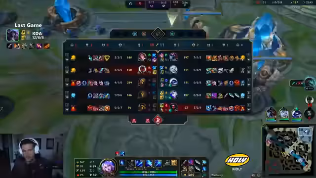 00:27:47Bei seinem Kha'Zix-Spiel gerät der Streamer in eine kritische Situation, als er beinahe vom gegnerischen Darius ausgeschieden wird, nur durch knappes Überleben mit wenigen Hitpoints. Er beschreibt das Gefühl, das Spiel fast verloren zu haben, und ist erleichtert, es dennoch drehen zu können. Im anschließenden Spiel auf Ash spiegelt sich Frustration wider, da er sich ungenügend positioniert fühlt und denkt, sein Team hätte ohne ihn gewonnen. Seine Leistungen wirken inkonsistent und er wirft sich selbst mangelndes Spielverständnis vor.