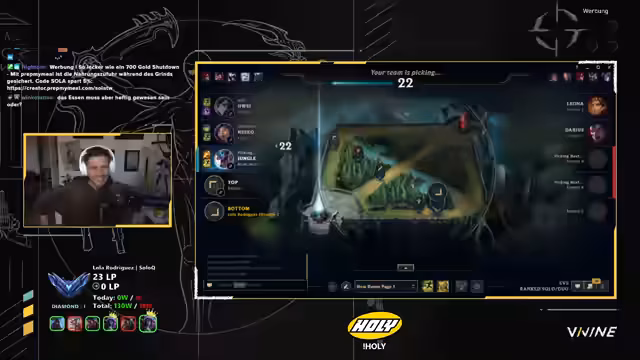 00:17:53Nach den China-Erlebnissen wechselt der Streamer zurück zum Gameplay. Er beginnt, um sich wieder warm zu spielen, und wählt zunächst Caitlyn in der Top-Lane. Allerdings klagt er über eine unangenehme Schwäche im Mid-Game des Champions, die ihn nutzlos erscheinen lässt. Nach einem schwierigen Spiel wechselt er zu Kha'Zix in der Jungle. Er zeigt sich frustriert über seine eigenen Leistungen und den fehlenden Impact auf den Champion, während er versucht, die Map zu lesen und die Positionierung des gegnerischen Junglers vorauszusagen.