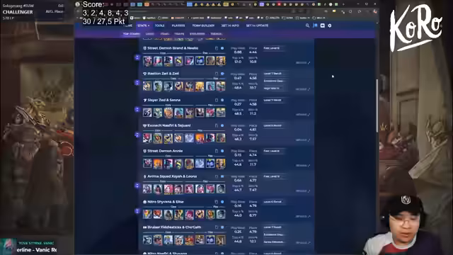 00:09:30Im Fokus stehen Analysen von Team-Kombinationen und Items im Spiel Teamfight Tactics (TFT). Der Streamer diskutiert Synergien zwischen Einheiten wie Seju, Jax, Morde, Seri und Jin. Es werden Spielstrategien für unterschiedliche Phasen des Spiels erläutert, insbesondere für das Late Game mit 5 oder 7 Exo-Einheiten. Besonderes Augenmerk wird auf die Kombination mit Holobow gelegt und deren Vorteile erklärt.