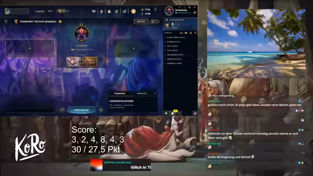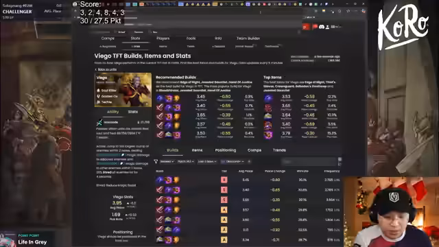 Der Streamer analysiert Teamfight Tactics Strategien, Item-Builds und Team-Kompositionen. Der Fokus liegt auf Exotec-Kompositionen, Item-Empfehlungen für Champions wie Seri und Varus. Vorbereitung auf ein Turnier durch Analyse gegnerischer Strategien und Übungsspiele. Diskussionen über Gamepläne, Teamzusammenstellungen und Anpassungen im Spielverlauf.