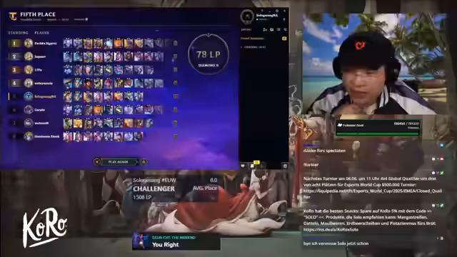 Eine bevorstehende globale Qualifier im Teamfight Tactics wurde für den 6. Juni um 11 Uhr angekündigt. Die aktuelle Platzierung auf Rang 27 bietet eine solide Ausgangslage für die Qualifikation, da bis zum 10. Juni nur Platz 47 benötigt wird. Es wurde erwähnt, dass Top 4 des letzten Cups automatisch qualifiziert sind. Es wurden verschiedene Strategien wie Loose-Streak-Coms und Anima Squad besprochen, um das Turnier optimal vorzubereiten.