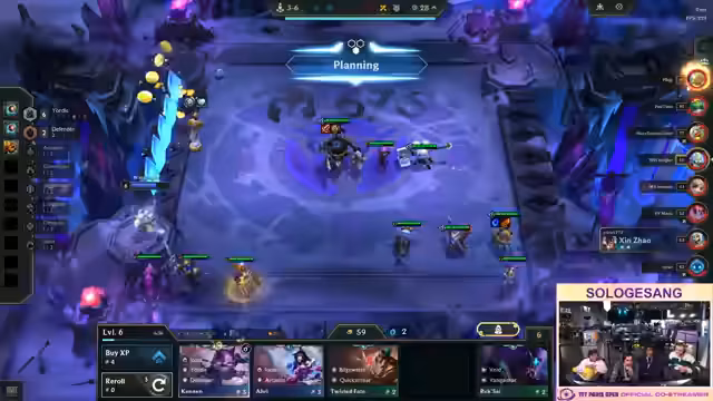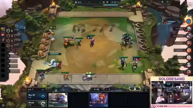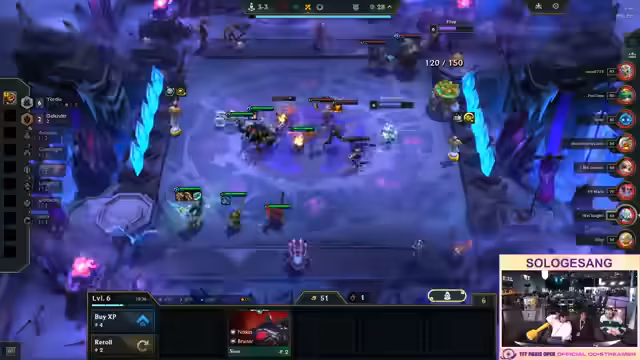 03:50:00Sologasang startet sein entscheidendes Spiel mit einem Radiant-Relics-Augment und einem Unara-Starterkit. Er diskutiert die Vor- und Nachteile des Starterkits, das zwar eine 2-Star-4-Cost-Einheit garantiert, aber nicht optimal für einen Sieg ist. Die Positionierung seiner Einheiten wird optimiert, um AoE-Schaden von Yunara maximal zu nutzen. Gleichzeitig wird die Leistung von Dishsoap beobachtet, der bereits Kai'Sa 2 erreicht hat. Sologasang muss nun seine Wukong-Ionia-Synergie ausbauen, um gegen die starke Konkurrenz bestehen zu können.