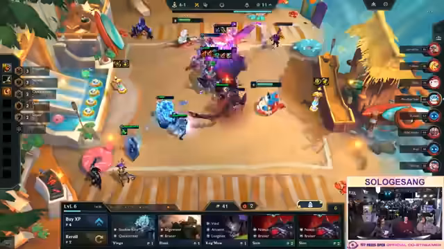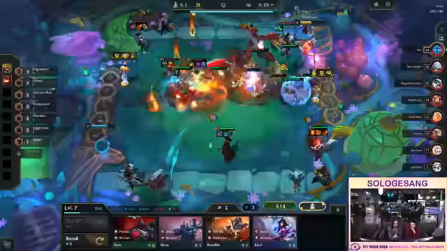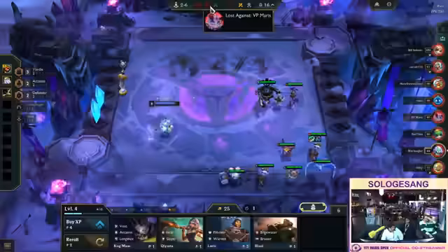 04:10:00Sologasang reflektiert sein Spiel: Trotz des Radient-Relics-Augments konnte er nicht winstreaken und wurde durch den 3-Way-Contest auf Yunara behindert. Er erwähnt das unglückliche Positionierungsproblem in einer entscheidenden Runde. Für die Zukunft plant er, seine Strategie anzupassen. Gleichzeitig wird ein Ausblick auf die nächsten Turniere gegeben und das Ende des Streams angekündigt. Die Viewer werden über die Qualifikationschancen der anderen Spieler informiert, während der Stream ausläuft.