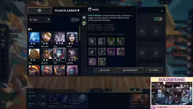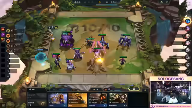 04:00:00Sologasang arbeitet an seiner Board-Zusammensetzung mit 4 Bruisern und 5 Ionia, wobei er Kobuko und Kennen für Synergie einsetzt. Die Diskussion konzentriert sich auf die optimale Positionierung von Wukong, um Yunaras Fähigkeiten besser auszunutzen. In einem entscheidenden Fight gegen Ashmo verliert Sologasang trotz guter Items, da sein Yunara zu früh stirbt. Diese Niederlage gefährdet seine Qualifikationschancen, da er nun auf Fehlplatzierungen der Konkurrenz angewiesen ist.