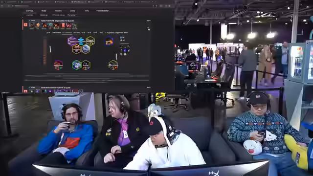 07:37:33Während auf die nächste Lobby gewartet wird, unterhalten sich die Teilnehmer mit einem Prediction-Spiel, bei dem sie Boards wie Zett (Zed-basiert), Miss Fortune und Ash vergleichen und vorhersagen, welches gewinnt. Der Chat und die Zuschauer sind aktiv eingebunden, diskutieren Comps mit Einheiten wie Lulu, Zoe und Diana, und bewerten Item-Setups wie Rageblade oder Infinity Force. Dies schafft eine lockere Atmosphäre, während technische Probleme oder Verzögerungen bei Lobby-Beteiligung thematisiert werden.