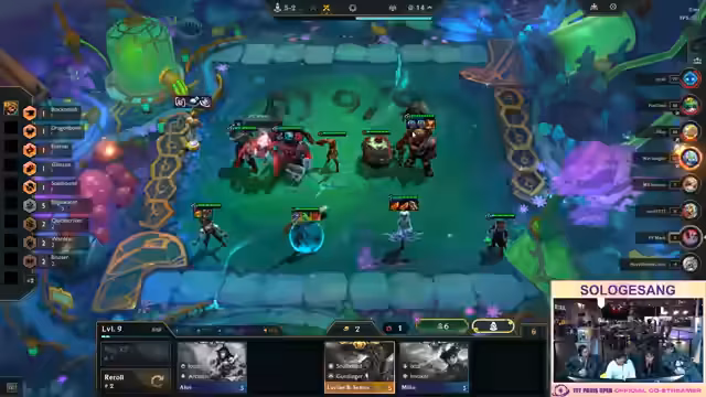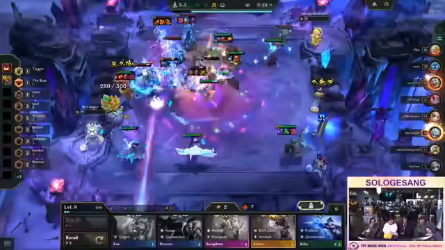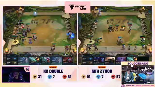 05:11:47Spieler nutzen Streaks für massiven Econ-Vorteil, um Level 9 zu erreichen und starke Endgame-Boards wie 6-Yordle mit Kennen/Kobuko-Unlock zu spielen. Elia verliert seine Streak gegen Kalze, bleibt aber mit finanziellen Ressourcen im Rennen. Jungler strebt mit Forward Thinking ein Level-9-Board mit Senna/Kindred an, kämpft aber mit fehlender Frontline und Damage. Ripple stabilisiert erfolgreich mit einem 6-Yordle-Board und Econ-Augments.