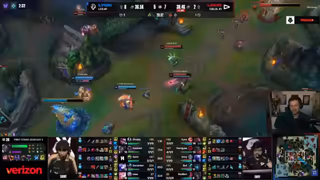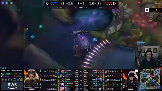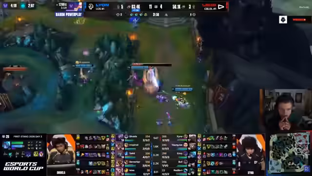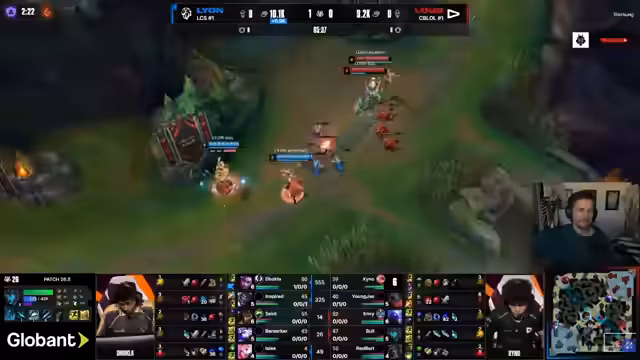 05:45:26Das Entscheidungsspiel beginnt mit einem Draft, der vom Kommentator als 'weird' bezeichnet wird, da er zu einem sehr passiven Spielstil passt. Lions erste Wahl Karma wird als unerklärlich angesehen. Das Early Game verläuft für Lion nach Plan, während ihre Gegner in einem standardisierten Lane-Up mit Corki gegen Vex ins Schwanken geraten. Der Jungler von Lion, Inspired, zeigt sehr kontrolliertes und routiniertes Jungle-Camping. Ein kritischer Gank, bei dem der Top-Laner Dokla stirbt, wird analysiert. Der Kommentator vertritt die Meinung, dass dies ein Fehler des Bots, nicht des Junglers war, da dieser das Fehlen von 'Pyo' (presence) falsch interpretierte. Obwohl Lion einen frühen Vorsprung im Gold hat, wirken die Plays sehr kontrolliert.