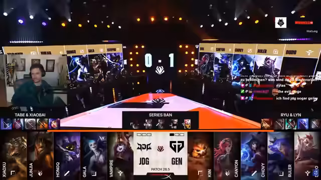 00:17:16In der Champion Select von Game 1 wird der aktuelle Patch analysiert. Karma wird als extrem stark und "broken" identifiziert, weshalb er sehr häufig als erstes gepickt wird. Auch der VAROS-Ban wird thematisiert, da Teams auf Blue-Side ihn bannen, um ihre Bot-Lane blind picken zu können. Analysten bewerten den Draft von JDG als "ehrlich" und "sexy" mit Picks wie Rumble, Seraphine und Bard, während Gen.G mit dem unkonventionellen Twisted Fate im Mid-Lane überrascht. Die späte Draft-Phase gestaltet sich für JDG schwierig, da der Pool für ihren Jungler, Rumble, langsam dünn wird.