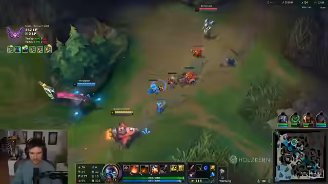 00:00:04Der Stream beginnt mit dem Ziel, 500 LP für den Grandmaster-Rang auf Corki zu sammeln und sich wieder in die Top 5 Europas zu spielen. Nach einer Pause wird der Tag bei 460 LP und einer 7-Game-Winning-Streak gestartet, wobei der Fokus darauf liegt, die Performance zu maximieren und den Einfluss des Matchmakings zu diskutieren. Die Runde beginnt gegen Nautilus, was eine schwierige Ausgangslage für die Bot-Lane darstellt, und der Streamer hegt Bedenken wegen der Senna-Pick des Supports.