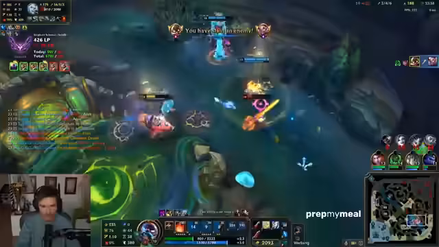 00:13:54Die Bot-Lane wird durch den Nautilus-Pick und dessen günstige Matchup gegen Senna frühzeitig unspielbar. Der Streamer wird mehrmals getötet, verliert CS und hängt in Level hinter dem gegnerischen AD Carry. Er stellt fest, dass das Spiel zu 95% bereits in der Champion-Select-Phase verloren ist, da es keine Möglichkeit gibt, dem ungleichen Matchup entgegenzuwirken, was zu einer 1-8-Bilanz führt.