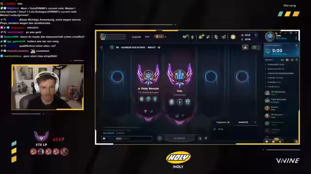 00:01:07Der Stream startet an einem sonnigen Freitag. Der Streamer begrüßt seine Zuschauer und teilt positive Nachrichten mit: Er hat eine feste Stelle als Lehrer auf Lebenszeit unterschrieben. In der League of Legends-Szene steht ein wichtiges Spiel an; es geht um den Klassenerhalt in der Prime League, bei dem ein Sieg den direkten Klassenerhalt bedeutet, während eine Niederlage komplexe Playoffs erfordert.