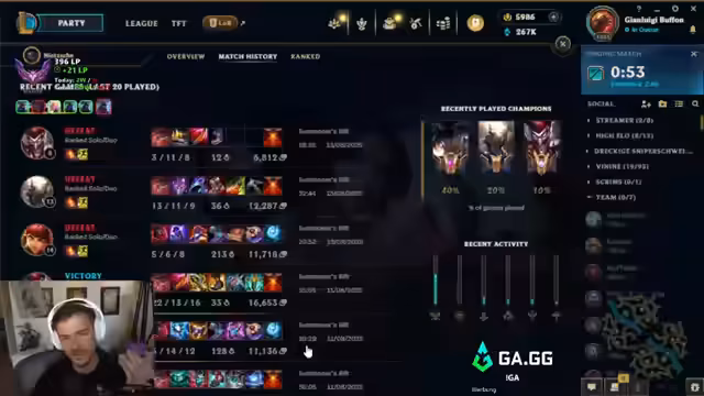 03:10:46Der Streamer gibt eine Bilanz seines aktuellen Climbs. Er hat mit Aphelios eine 65%ige Winrate und sieht sich auf einem guten Weg, 500 LP zu erreichen. Er analysiert die Gründe für verlorene Spiele: entweder durch offensichtliches Trolling oder Spiele, in denen er seine ADC-Rolle nicht optimal ausspielt, obwohl das Team eigentlich hätte gewinnen können. Er äußert sich auch kritisch zur aktuellen 'Season'-Struktur von Riot, die er für irreführend hält, da es sich eher um Splits handelt.