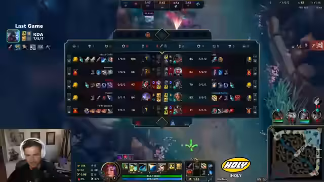 03:04:24Aufgrund von verdächtigen Statistiken von Mitspielern beginnt der Streamer eine 'Account Investigation'. Er stellt fest, dass der gegnerische Mid-Laner auf Oriana eine sehr hohe Winrate hat, was auf möglichen Elo-Boosting hindeutet. Zudem identifiziert er den gegnerischen Top-Laner Jax als 'Smurf'. Der Streamer kündigt an, zukünftig häufiger Spiele zu 'dodgen', wenn sich Teammates gegenseitig beleidigen oder trollen, um wertvolle Zeit zu sparen.