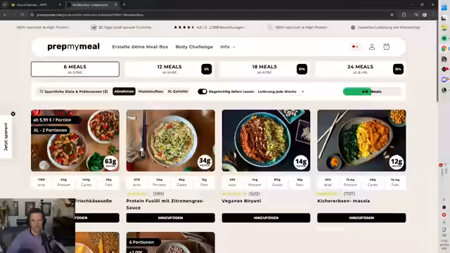 05:08:50Es wird die Zusammenarbeit mit dem Sponsor PrepMyMeal vorgestellt. Der Streamer demonstriert, wie man über den Sponsor verschiedene Gerichte bestellen kann. Besonders hochproteinische Optionen werden empfohlen, die für Sportler und Muskelaufbau geeignet sind. Es werden konkrete Gerichte wie vegetarische Lasagne oder Kichererbsen mit Harissa genannt. Der Streamer betont, dass die Auswahl neben dem gesundheitlichen Aspekt auch dem Geschmack dienen soll und jeder seine eigenen Favoriten auswählen kann.
