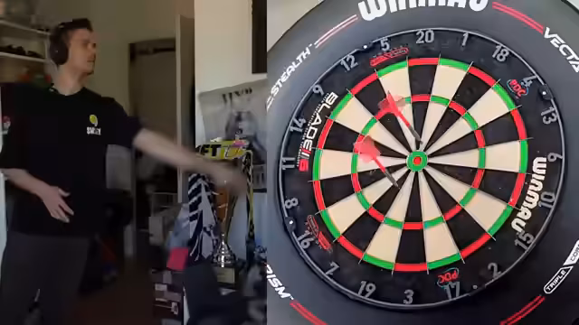 05:14:00Nach Überwindung der technischen Probleme beginnt das eigentliche Dart-Training. Der Streamer setzt sich konkrete Ziele und analysiert seine Schwächen, besonders das Doppeltreffen. Er spielt gegen einen personalisierten Bot, der sich an seine eigene Leistung anpasst. Dabei zeigt er sowohl hochmotivierte als auch frustrierte Phasen, je nach Erfolg. Es werden verschiedene Strategien und Finish-Möglichkeiten erörtert, während der Streamer gleichzeitig seine mentale Einstellung reflektiert und den Vergleich zum League of Legends Gameplay zieht.