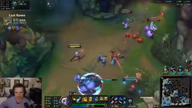 00:29:08Während eines League of Legends Spiels analysiert der Streamer das Verhalten seines Teams, insbesondere einen 'Ryze', der sich anscheinend nicht am Kampf beteiligt und nur Wellen pusht. Es kommt zu Frustration über das Spielverhalten, aber auch Anerkennung für gute Plays wie eines vom Gegner 'Hagrim'. Der Streamer diskutiert über verschiedene Spielstile, Champion-Wahl und strategische Entscheidungen wie die Bedeutung von Early Game versus Late Game.