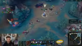 01:57:18Der Streamer entscheidet sich, Collector als erstes Item zu bauen, um Dives zu erschweren. Er fühlt sich unter Druck gesetzt und erwähnt die Spiele-Musik als positive Stimmung. Sein Support Jenna hat versucht, mit Lens zu spammen, was der Streamer zunächst skeptisch sah. Außerdem ist der Gegner mit Kraken stark und der Support zu spät für Dives in der Botlane, was zu Frustration führt.