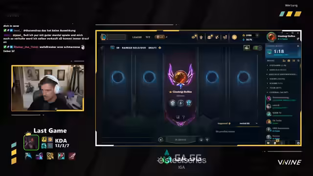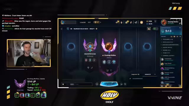 03:37:40Der Streamer erklärt, dass er vor kurzem seinen Namen von 'Sola' zu 'Buffon' geändert hat. Seine Theorie war, dass er mit einem halbwegs undercoveren Namen weniger ghosted würde, als AD Carry. Er hat das Gefühl, dass die Spiele seitdem einfacher geworden sind, was aber auch Kopium sein könnte. Er spielt weiter verschiedene Champions und erwähnt, dass Draven gebannt ist, was er nicht wusste. Er plant, nächste Woche wieder einen Custom zu machen, aber auch die Gamescom steht bevor.
