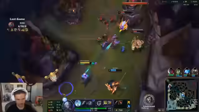 00:10:01Der Streamer analysiert kritisch einen verpassten Kill. Er gesteht, dass er sich darauf konzentriert hat, mit seiner E-Wurf-Fähigkeit (E) einen Knock-Up zu landen, aber dabei den Ulti des Gegners übersehen hat. Er kritisiert sich selbst dafür, nicht mehr auf seine Umgebung geachtet zu haben und stellt fest, dass er den Ulti hätte blocken können. Dies führt zu einer grundsätzlichen Diskussion über die Rollenverteilung: Der Streamer betont, dass sein Hauptgrund, Yasuo auf Bot zu spielen, darin besteht, den gegnerischen AD-Carry zu countern. Er erklärt, dass er in einem schlechten Match-up wie Caitlyn/Janna gezwungen ist, aggressiv auf den ADC zu fokussieren, auch wenn dies riskant ist, da dies sein primärer Impact im Spiel ist.