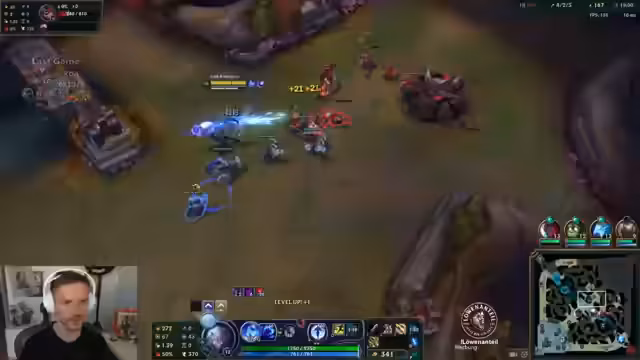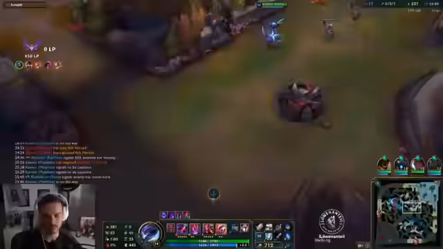 06:41:28In einem entscheidenden Teamfight verpasst der Streamer mit seinem Champion Gwen die Chance auf einen Knock-up, was zum Verlust des Fühers führt und das Spiel in den Wahnsinn treibt. Er beschreibt die ohnmächtige Situation, in der man die Stärken der Gegner-Champions wie Lulu nicht überwinden kann und letztlich diszipliniertes Spielen gefordert wäre, um solches zu vermeiden.