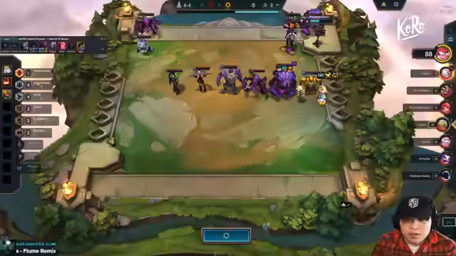 01:56:23Ein Teil des Streams wird einem Live-Spiel gewidmet, in dem der Streamer seine Meta-Einschätzungen in die Praxis umsetzt. Er startet mit der Yordle-Kombination, sieht sich jedoch schnell gezwungen, seine Strategie anzupassen. Nachdem er keinen Ken-Freestar findet, wechselt er zu einer Swain-Kombination. Er kommentiert den Fizz-Nerf, der den Build erheblich schwächt, und zeigt, wie schwierig es ist, eine solide Frontline ohne die richtigen Einheiten aufzubauen. Letztlich entscheidet er sich für eine 6-Yordle-Kombination mit Bruiser- und Defender-Fillern, um das Spiel zu stabilisieren.