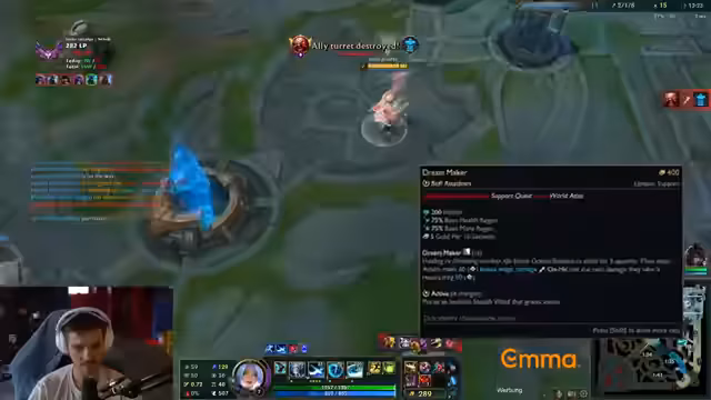03:55:06Der Streamer beschreibt eine spezifische Spielsituation mit mehreren Kills, Entscheidungen über Heal-Nutzung und Mana-Management. Es folgt eine Diskussion über die Unterstützung durch Teammitglieder, wobei die Gegner als herausfordernd eingestuft werden. Die Dynamik des Spiels wird hervorgehoben, einschließlich der Reaktionen auf das Gameplay und die Notwendigkeit, an strategischen Punkten zu handeln.