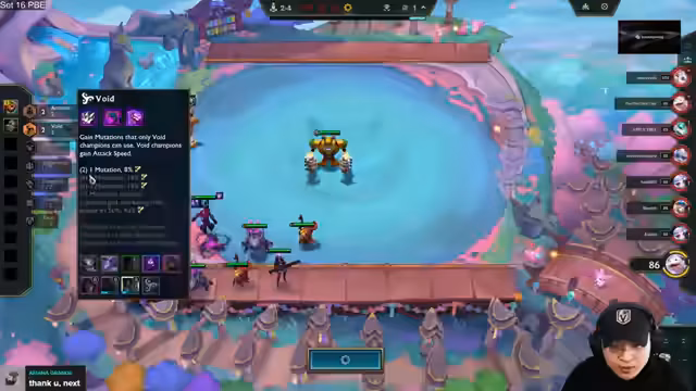 05:38:26Ein Fokus des Streams liegt dem Build für Baron. Die Anforderungen für die Aktivierung werden erklärt: sieben Voids im Spiel und Level 10. Der Streamer plant, Senna zu verkaufen, um Platz zu schaffen, was jedoch scheitert, da die Einheit zu viele Team-Slots benötigt. Er äußert den Wunsch, Void-Synergien zu nutzen. Ein technischer Vorfall unterbricht den Flow, da Chat-Copypasta-Funktion von Riot entfernt wurde, was als Belästigung empfunden wird. Die technische Beeinträchtigung führt zu Konzentrationsschwierigkeiten und Frustration.